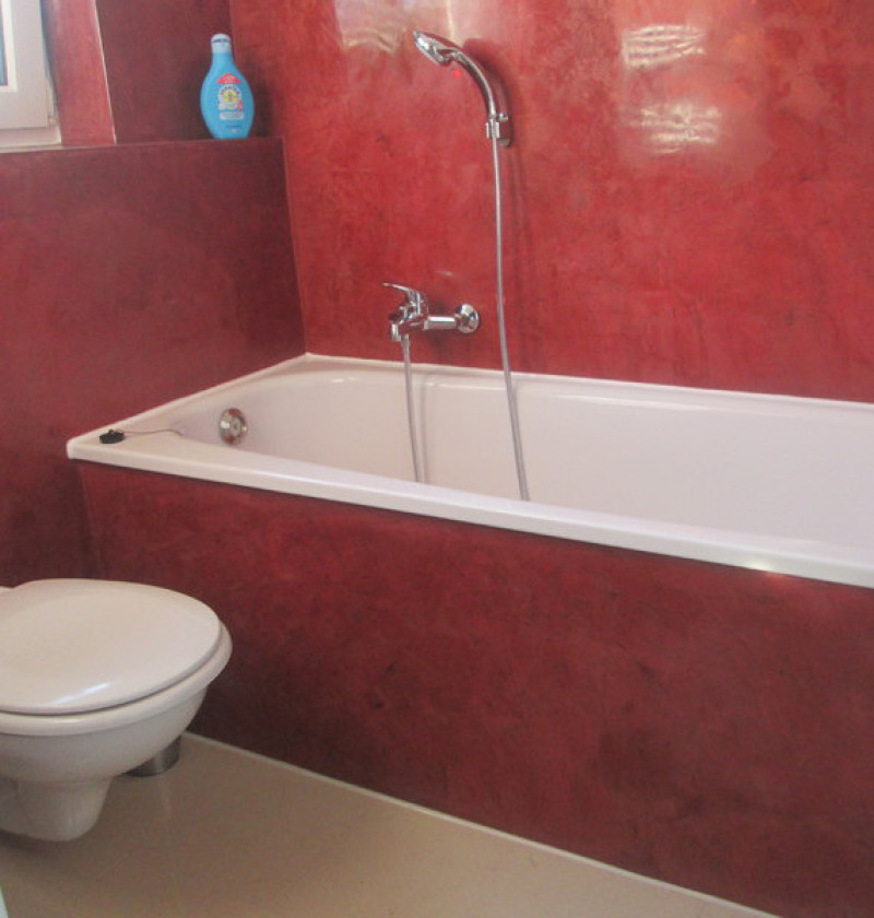 Alle Wände und die Decke wurden mit Venezianischer-Spachteltechnik bearbeitet.